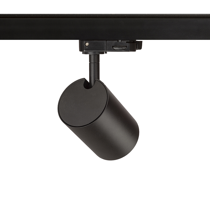 Zylindrischer Strahler für GU10 Lampe für 3-Phasen-Stromschiene.