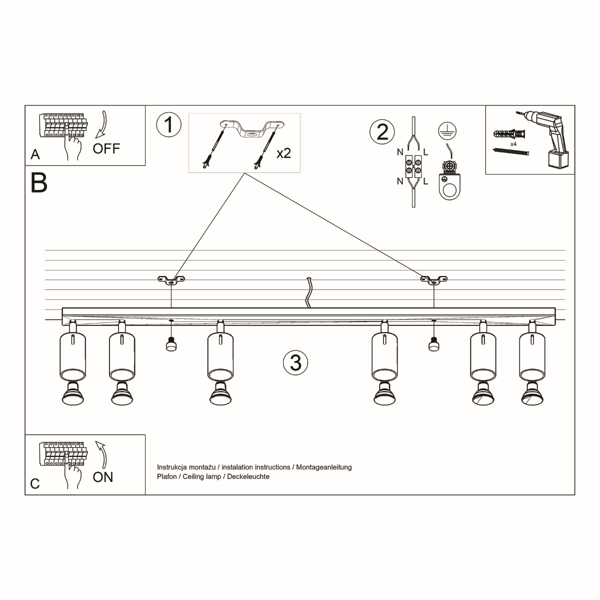 Erhellen Sie Ihr Interieur mit der Deckenleuchte mit 6 Lampenschirmen, die Sie in jedem Raum montieren können. Die verstellbaren Arme geben Ihnen große Freiheit bei der Gestaltung der Atmosphäre im Raum – von warmem Halbdunkel bis zu vollem Licht, je nach Einstellung der Lampenschirme. Die Deckenleuchte wurde mit dem Komfort des Benutzers im Hinterkopf entworfen – sehen Sie, wie sie für Ihr Wohlbefinden sorgt.