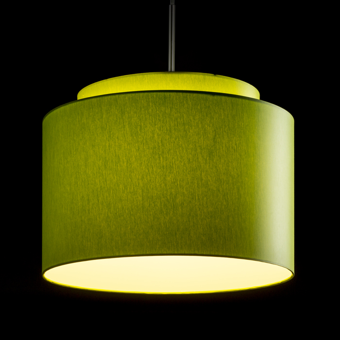 Textilschirm für E27-Fassung Montage an der Decke oder Aufhängung. PMMA-Diffusor (G11867 G12299) kann zusammen mit dem Schirm bestellt werden. Geeignetes Zubehör: HEX ELISA ENZO KOMBIX LISA SOLO.