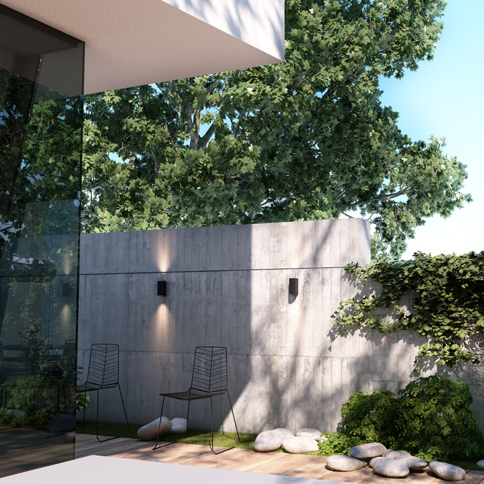 UP/DOWN-Wandleuchte für den Außenbereich mit zwei 3W-LEDs.